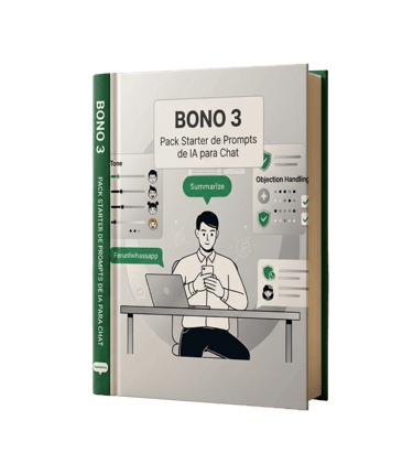 Es una guía paso a paso que te enseña a vender por chat con un flujo lógico y profesional, usando una una estructura probada de conversación (de apertura a cierre), plantillas “copia y pega” para situaciones reales, y prompts para usar IA (como GPT) para ajustar tono, resumir, crear variaciones y responder objeciones de forma ética.